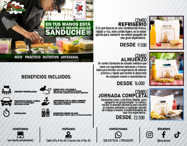 En San Duche nos interesa apoyar a nuestros clientes que tienen grupos a su cargo, mediante el suministro de alimentos en formatos prácticos y versátiles para que puedan atender sus eventos tanto familiares como corporativos con calidad superior y productos diferenciados.
